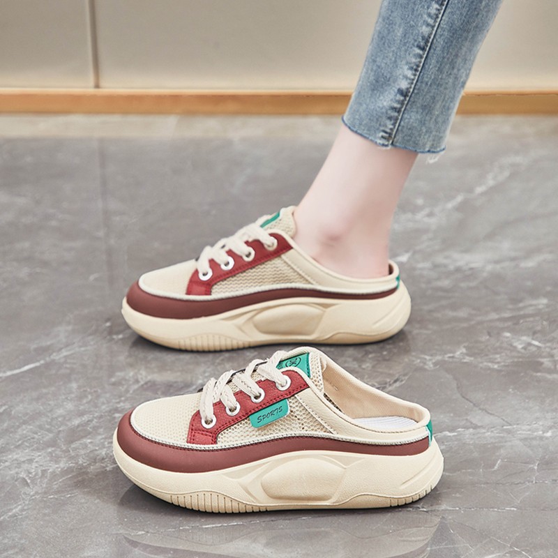 Half-Slip Women'S Shoes | Closed-Toe Backless Lazy Shoes Summer Women'S Sneakers | EVA Material, Solid Color, Platform Heel, Women Shoes