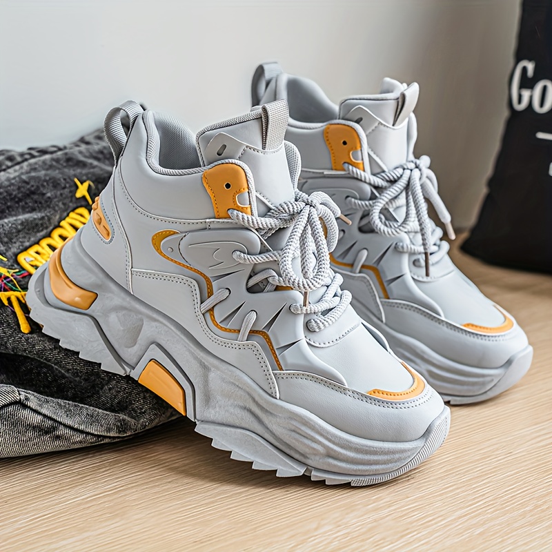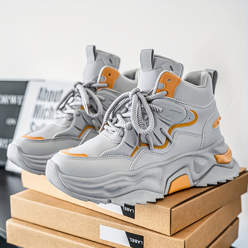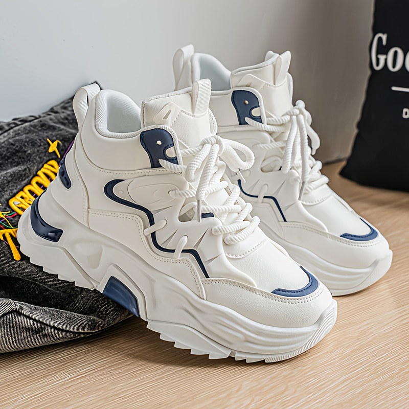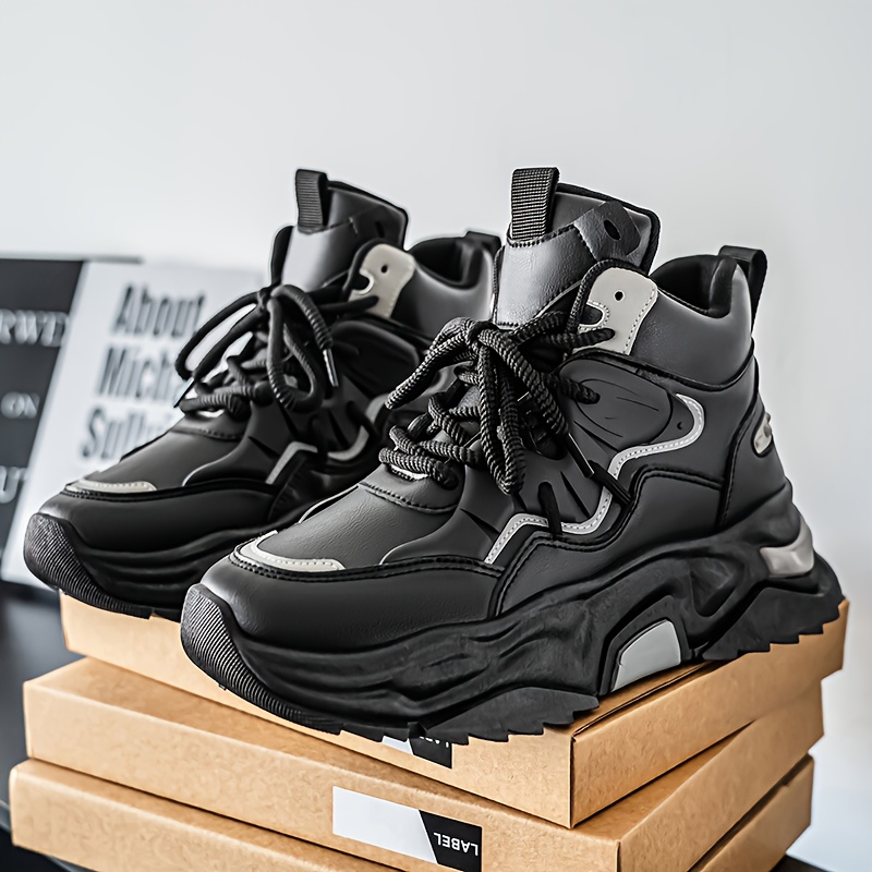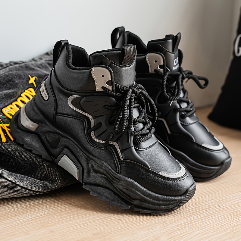 High Top Casual Shoes | New Versatile Fashion Men'S Shoes, Men'S Streetwear Sneakers, Winter Warm Fleece Lined Anti-Slip Shoes, Retro Chunky German Army Trainers, Outdoor Work Boots, Upper and Sole, Fabric Inner, Lace Closure