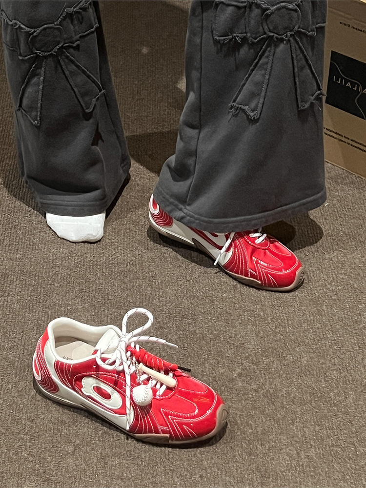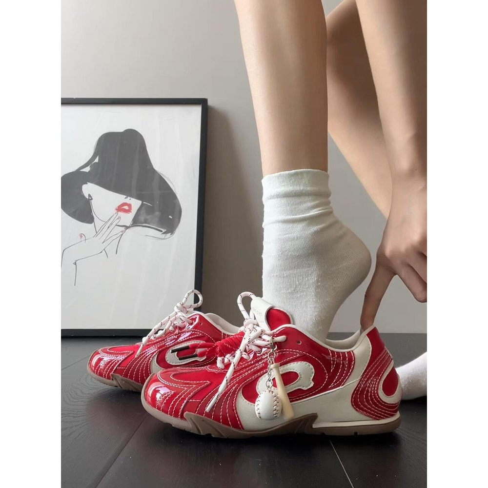 Vintage Baseball Style Casual Shoes | Autumn New Color-Block Racing Sneakers, Versatile Thin Sole Trendy Sports Shoes, Low Top, Fabric Upper and Sole, Plain Toe, Lace-up Closure