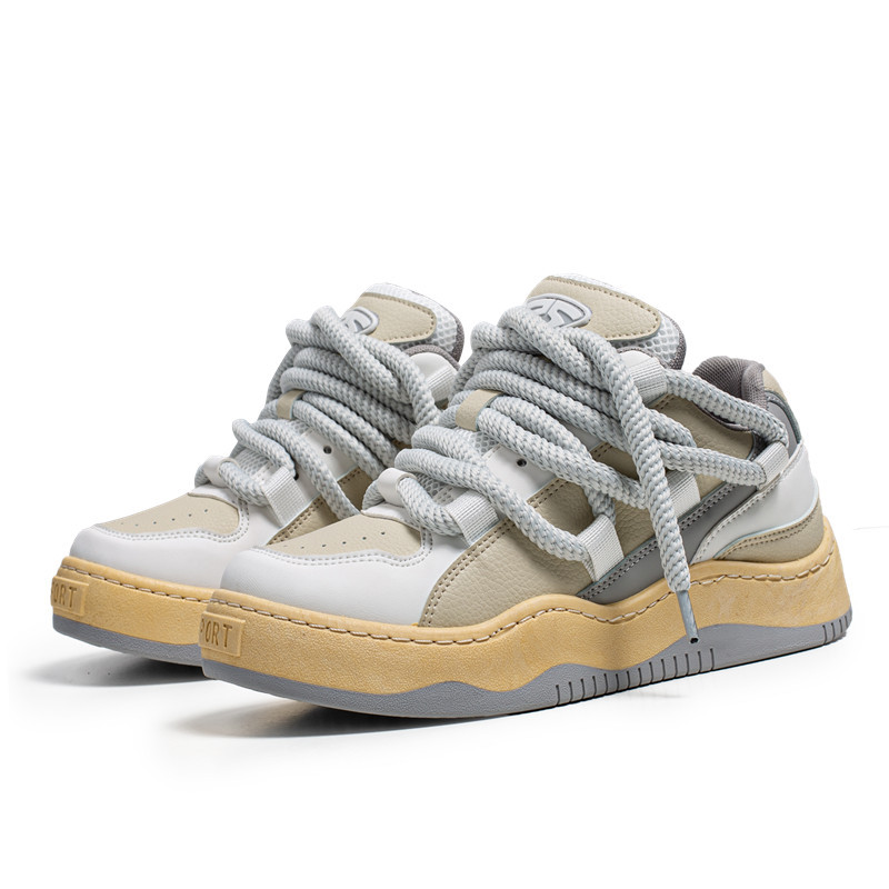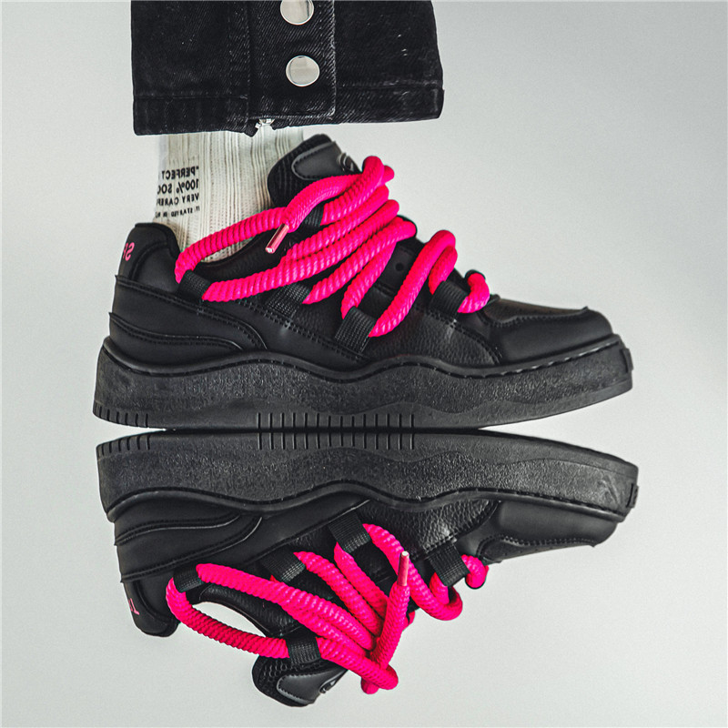 Men'S & Women'S Chunky Platform Sneakers - Korean Retro Style Wide Width Shoes with Thick EVA Sole, Low-Top Round Toe & Lace-Up Closure, /Pink Colorway - All-Match Casual Footwear for Spring/Autumn, Versatile for Everyday & Statement Outfits
