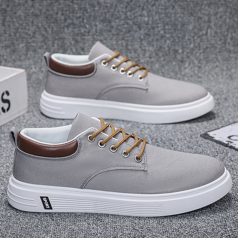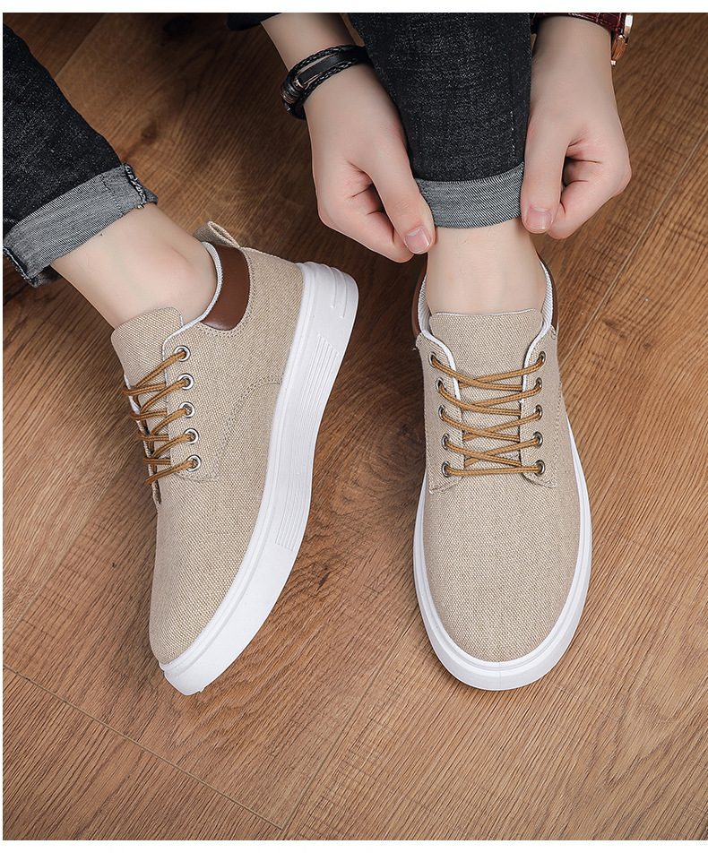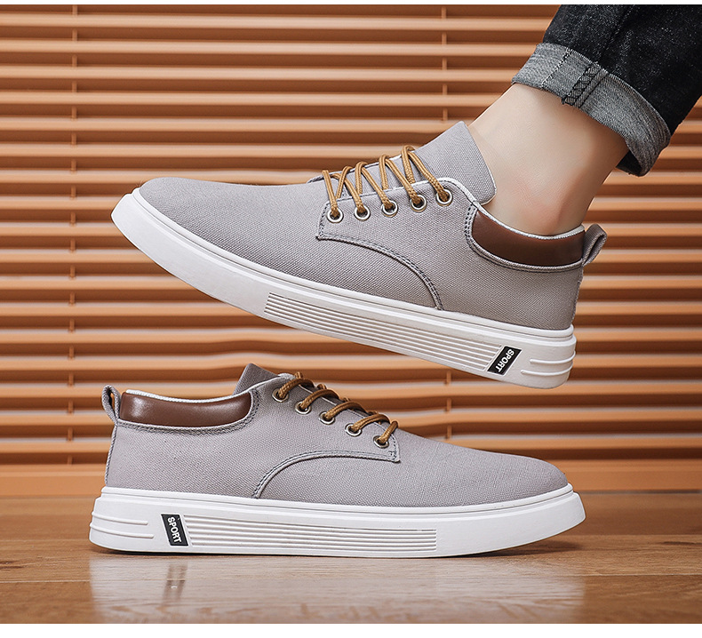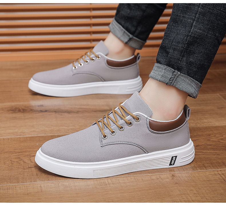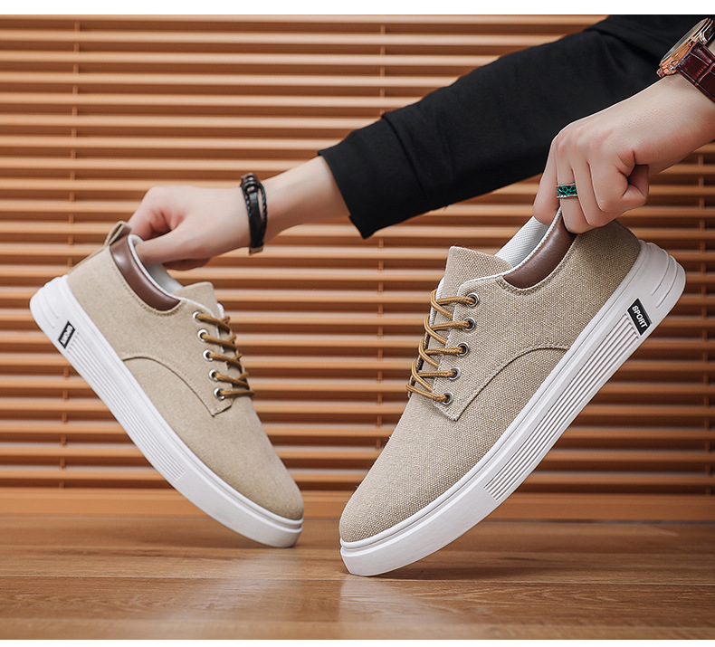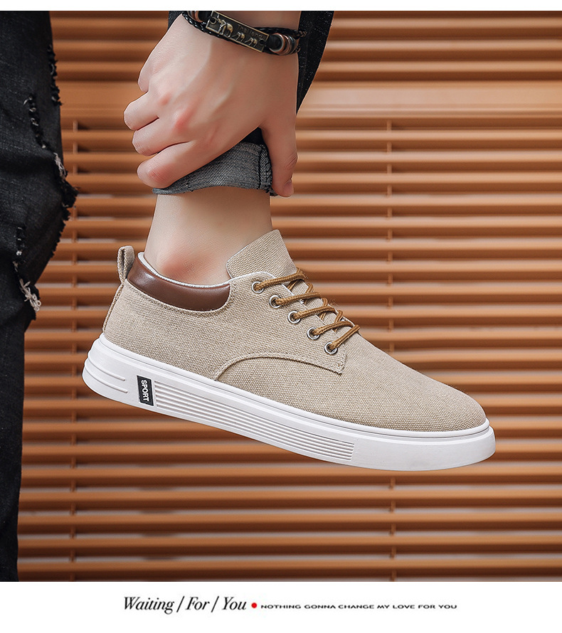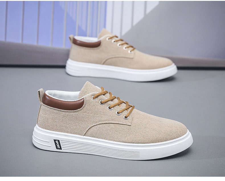 Men's Low-Top Lace-Up/Slip-On Canvas Sneakers - Breathable Round Toe Lightweight Running Shoes with PU Cushioned Arch Support, Wide Width Available - Tan/White/Gray/Transparent Color Options - All-Season Casual & Athletic Wear (Suitable for men,