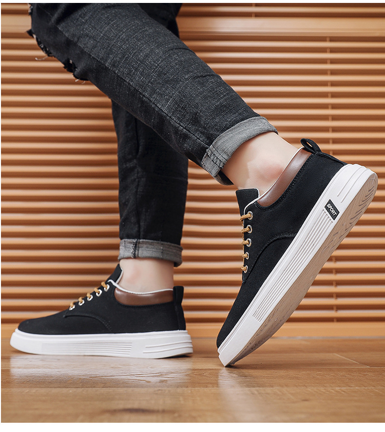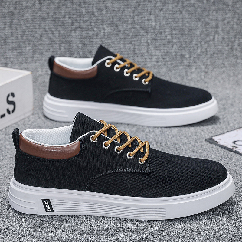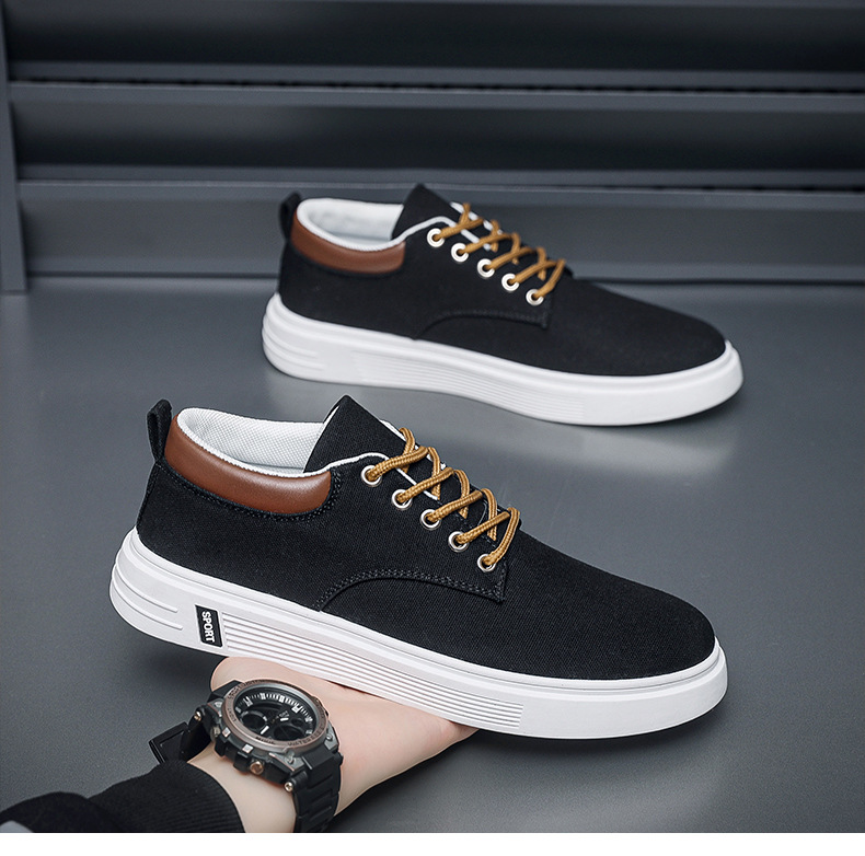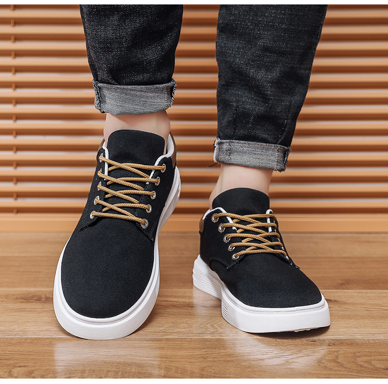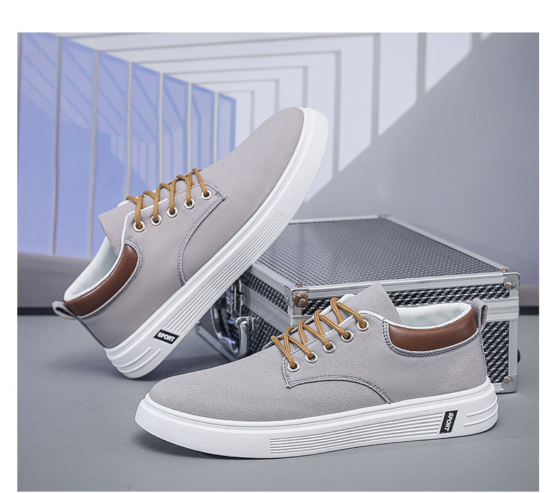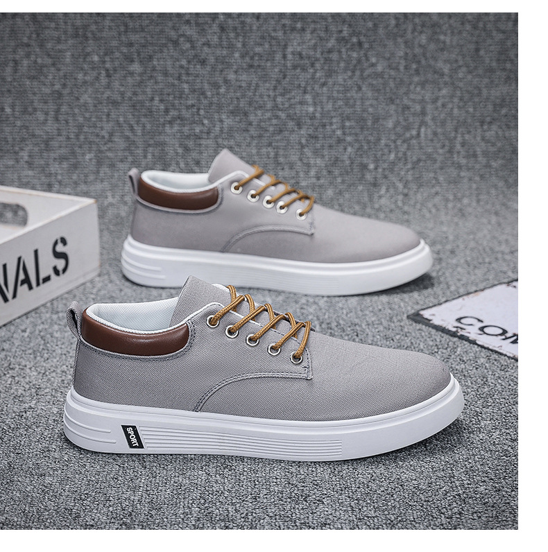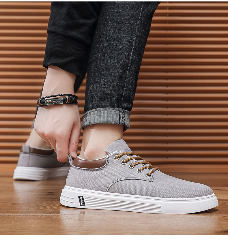 Men's Low-Top Lace-Up/Slip-On Canvas Sneakers - Breathable Round Toe Lightweight Running Shoes with PU Cushioned Arch Support, Wide Width Available - Tan/White/Gray/Transparent Color Options - All-Season Casual & Athletic Wear (Suitable for men,