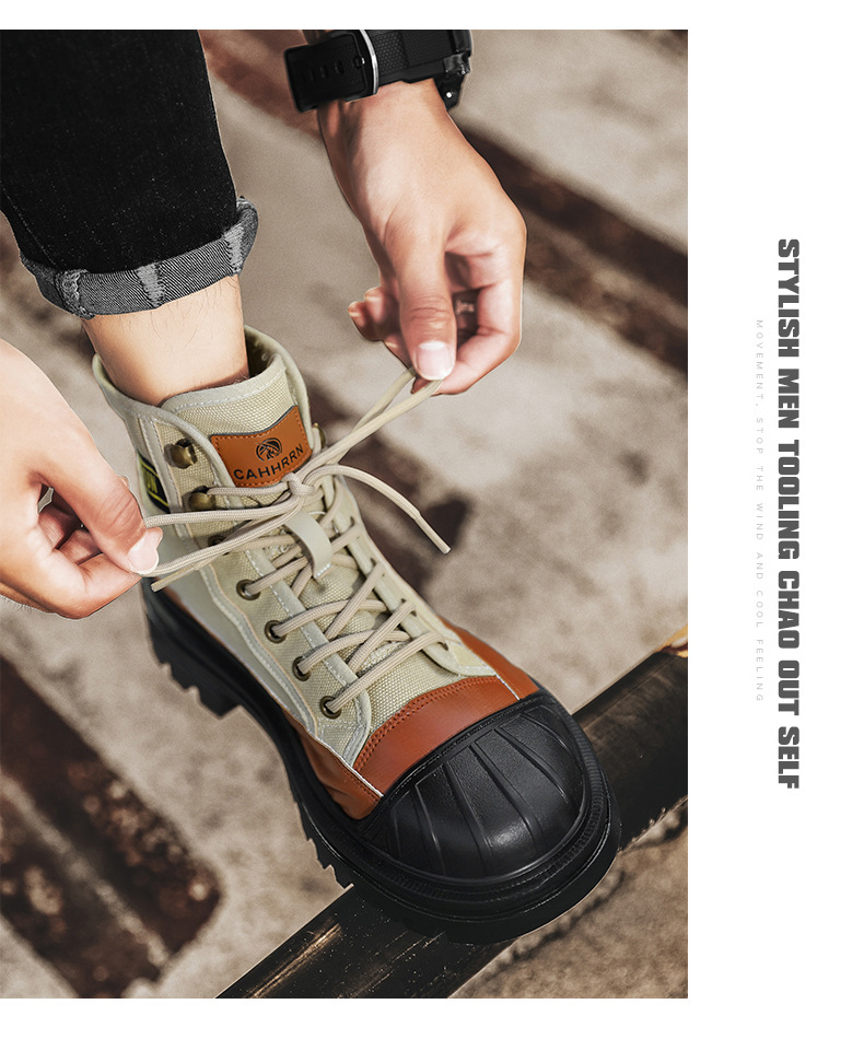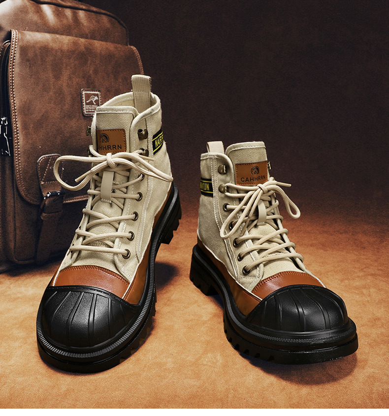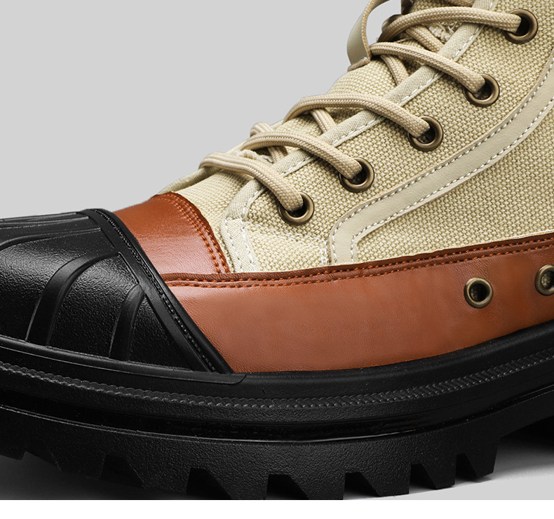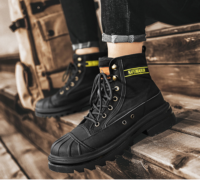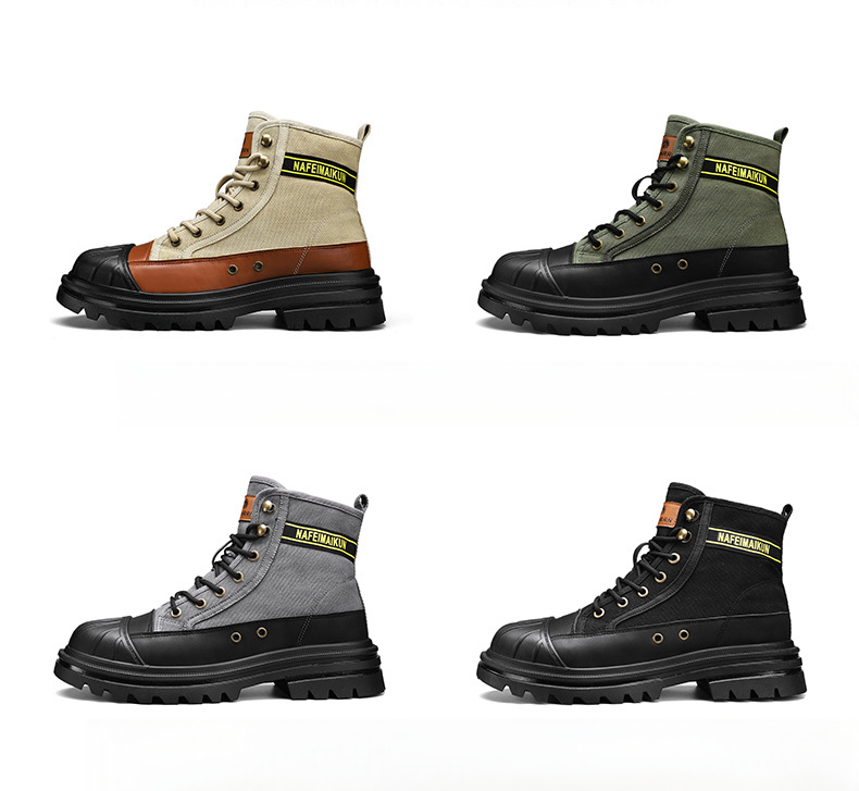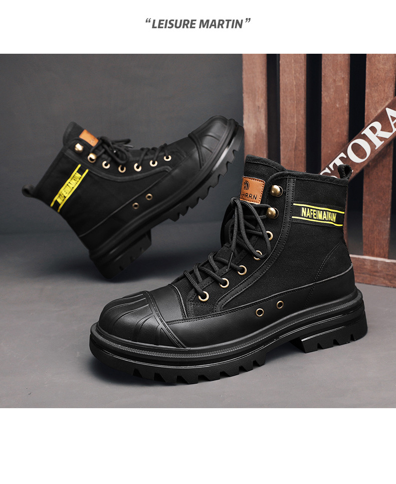 Men's Heavy-Duty Winter Work Boots - Shell Toe Anti-Collision, High-Top Ankle, PU -like Canvas Upper & PU Sole, - Rugged Outdoor Boots for,, Casual (Black/Golden) - Lace-Up