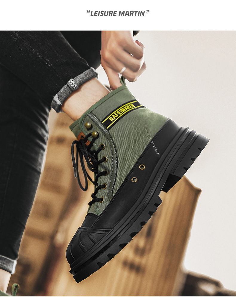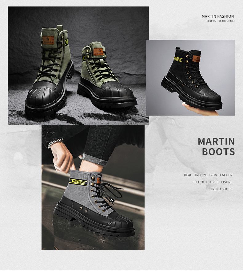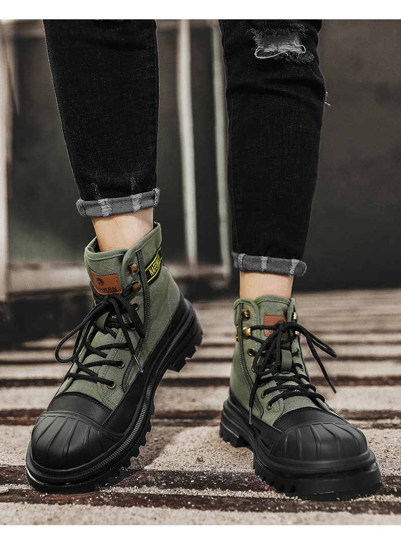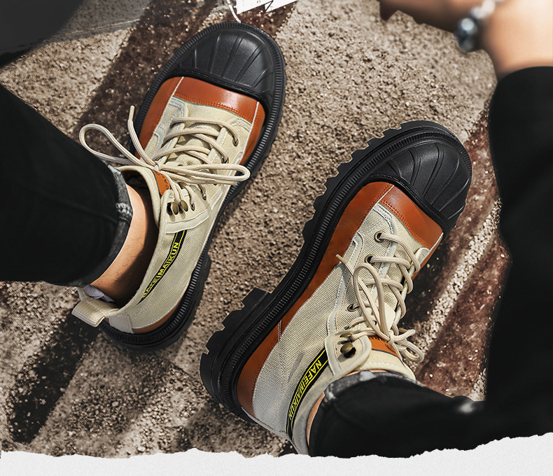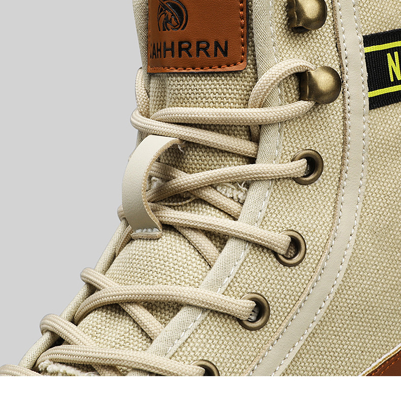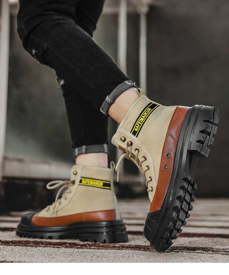 Men's Heavy-Duty Winter Work Boots - Shell Toe Anti-Collision, High-Top Ankle, PU -like Canvas Upper & PU Sole, - Rugged Outdoor Boots for,, Casual (Black/Golden) - Lace-Up