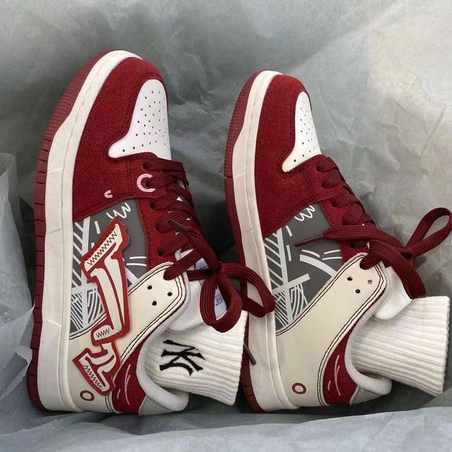 Men'S Retro College Style Sneakers | Red Unisex Casual Skate Shoes, Stylish Couple'S Wear, Comfortable Unique Design, Upper & Sole, PVC Inner, Lace Closure, Round Toe, Low Top
