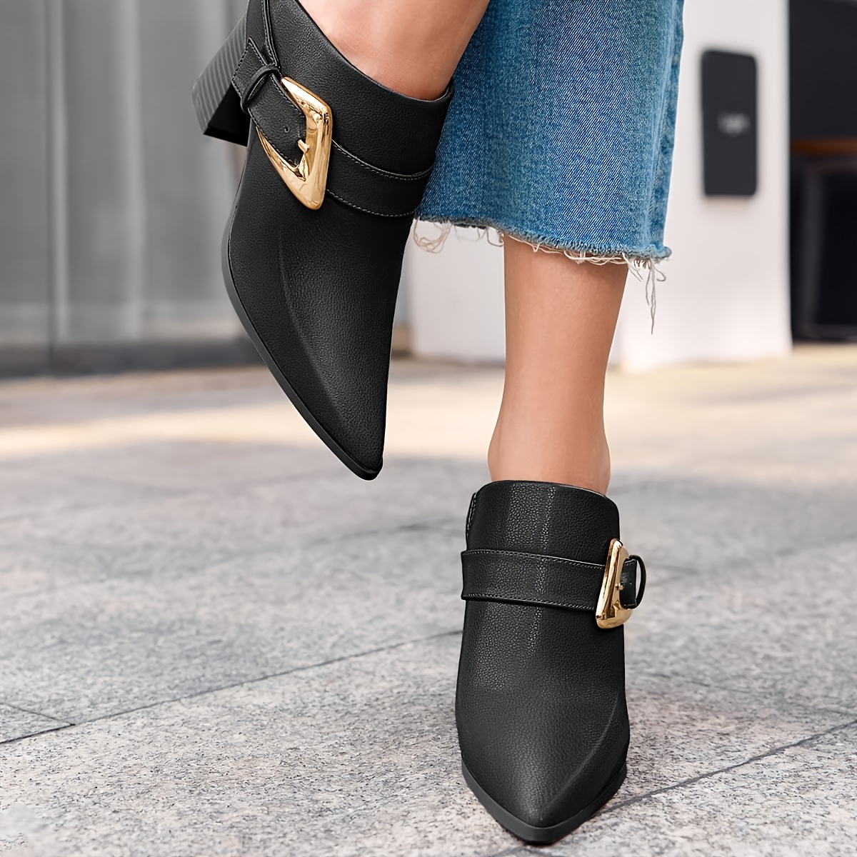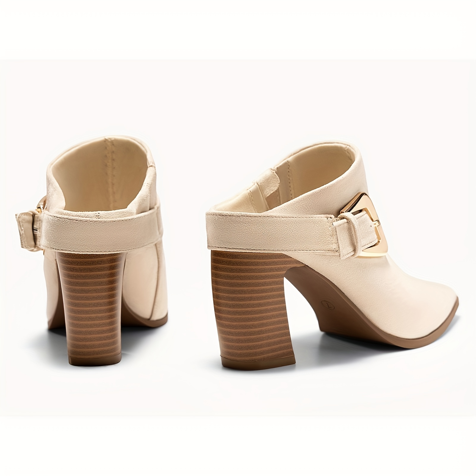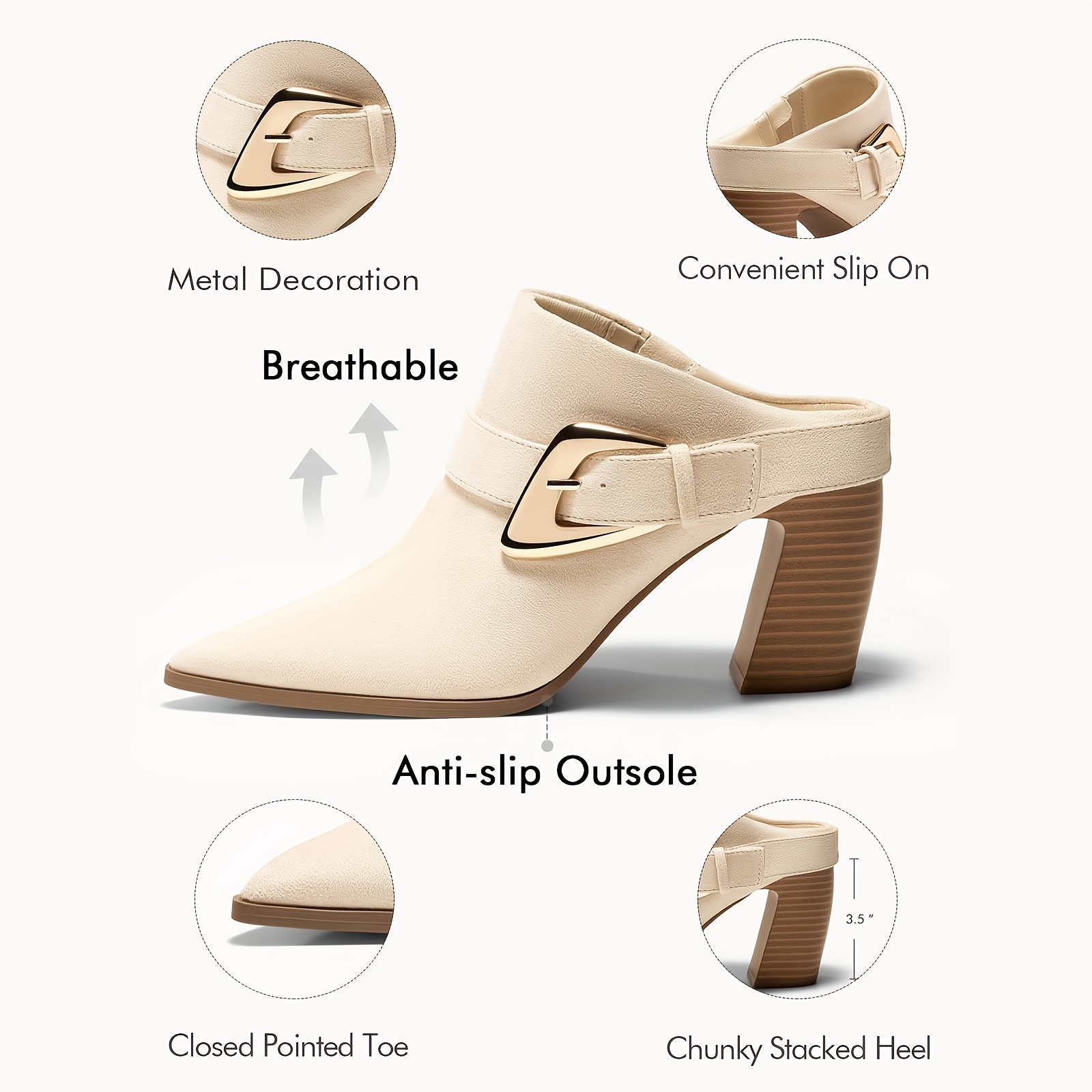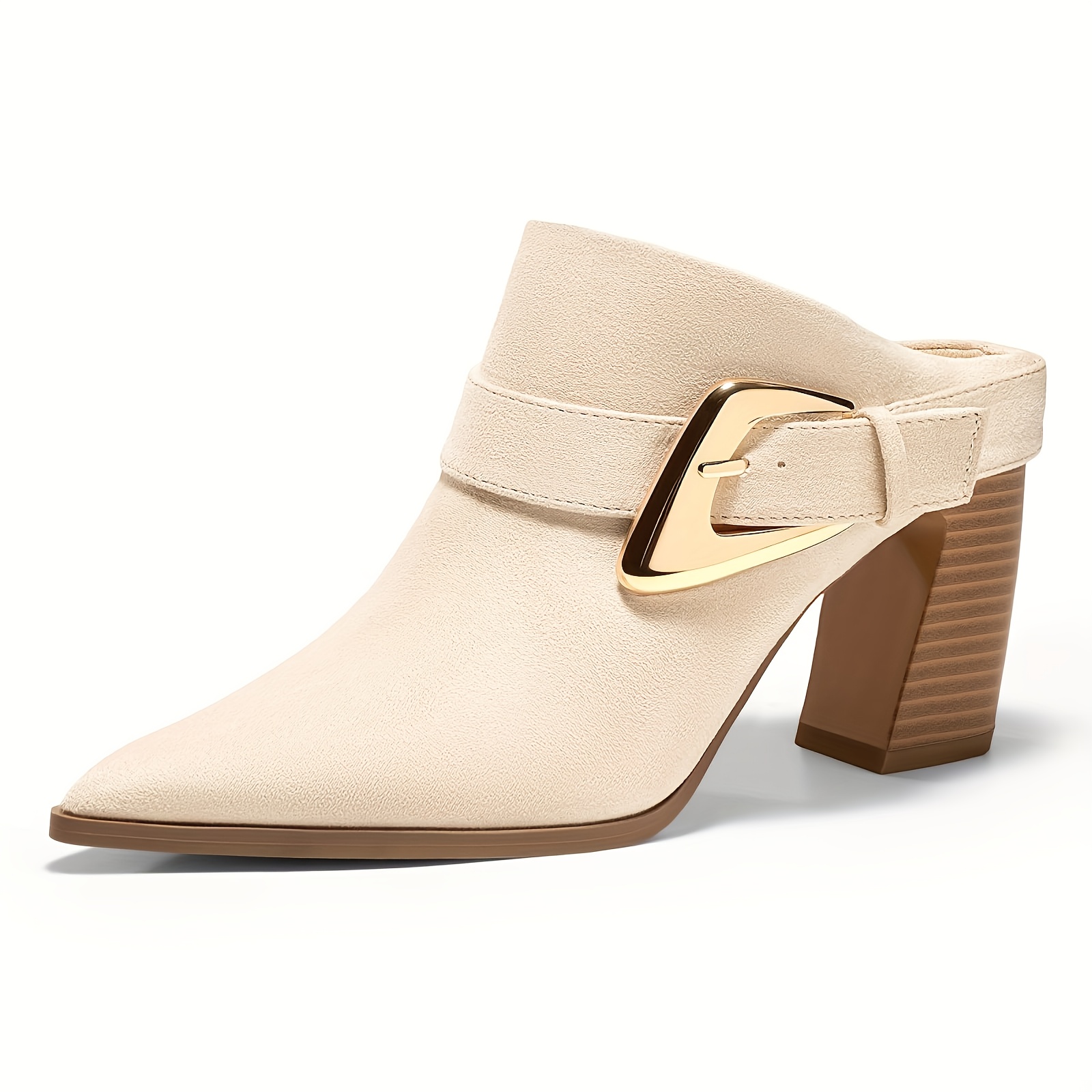 Women's Elegant Chunky Wedge Mule Boots - Slip-On Pointed Toe Dress Booties with Buckle Accent, Chunky Heel,  Upper &, Machine Washable for Fall, Casual to Dressy Outfits
