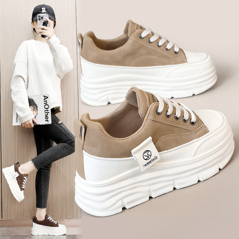 Women'S Two-Tone Chunky Platform Sneakers with Height Increase - Breathable Mesh Upper, Cushioned EVA Insole & Arch Support, Low-Top Lace-Up Casual Shoes with Tassel Accent - & All-Season Versatile Footwear for Daily Wear, Office