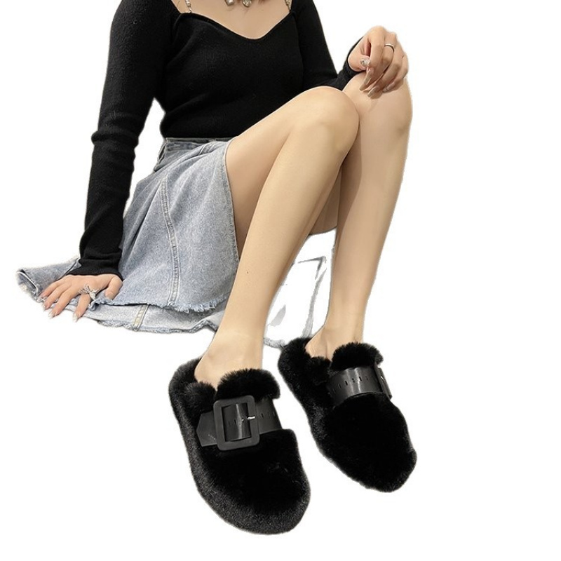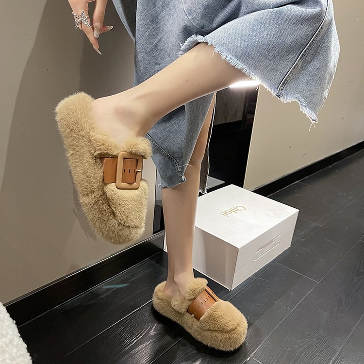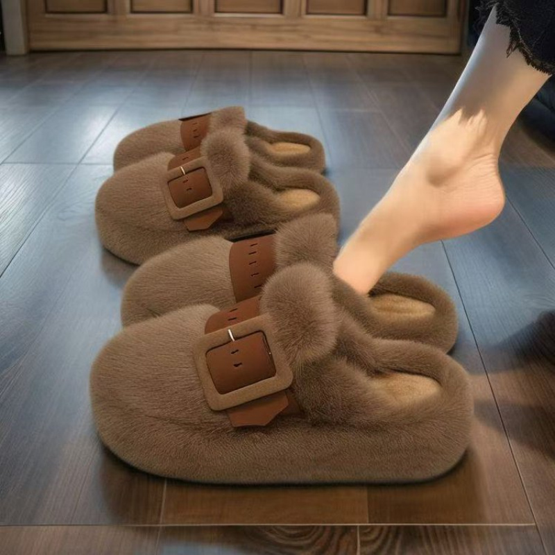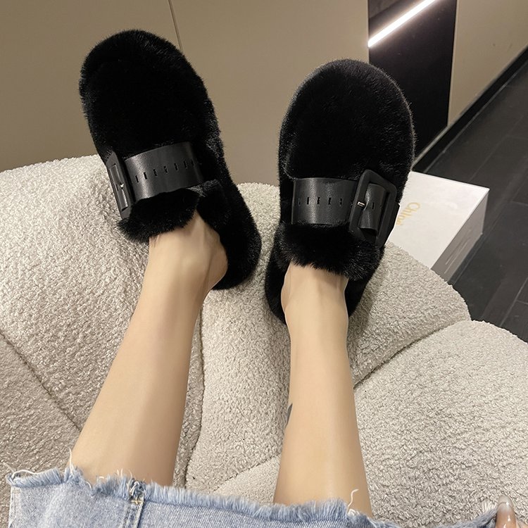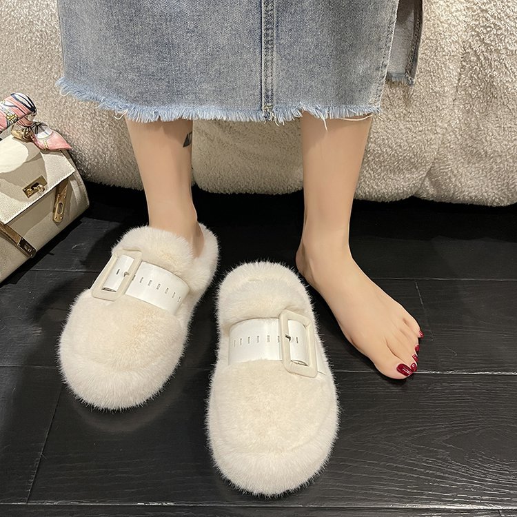 Women'S Winter Fuzzy Clogs | Platform Outdoor Slides Warm House Shoes Non-Slip Thick Sole faux fur Boots | Casual Style, Solid Color, Fabric Upper, Sole