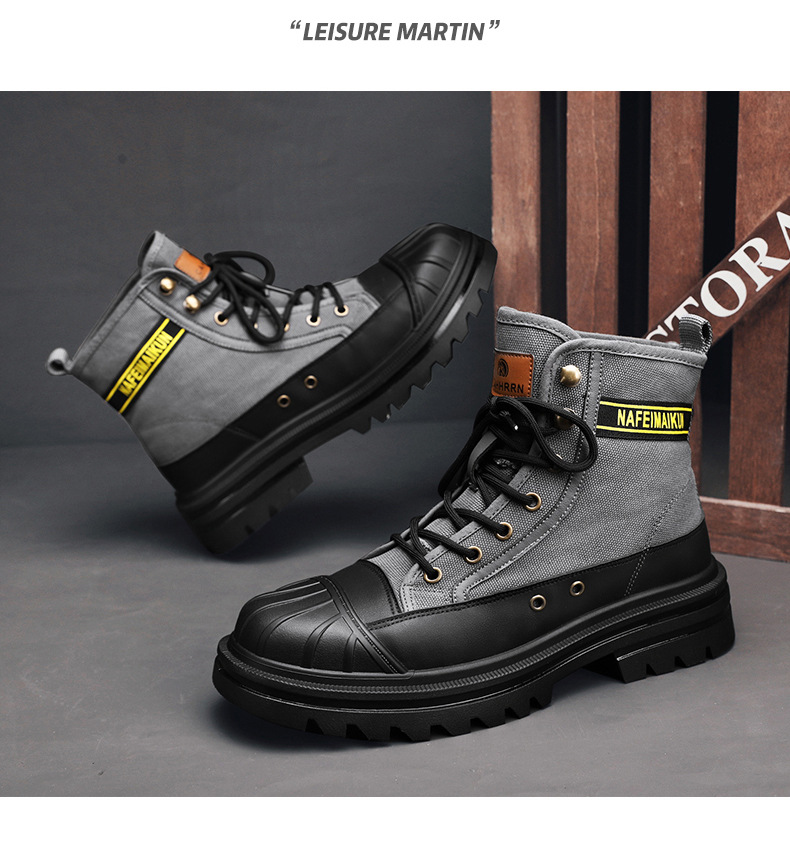 Men's Heavy-Duty Winter Work Boots - Shell Toe Anti-Collision, High-Top Ankle, PU -like Canvas Upper & PU Sole, - Rugged Outdoor Boots for,, Casual (Black/Golden) - Lace-Up