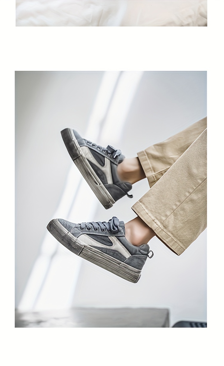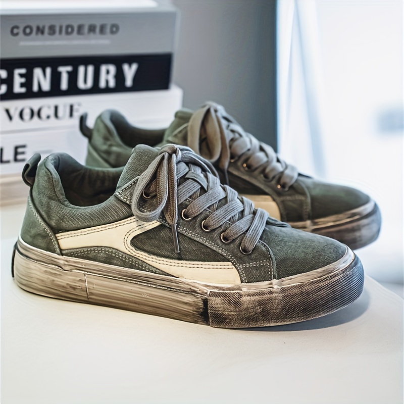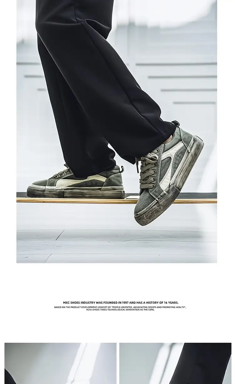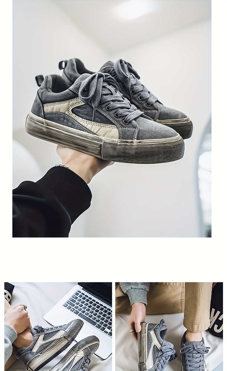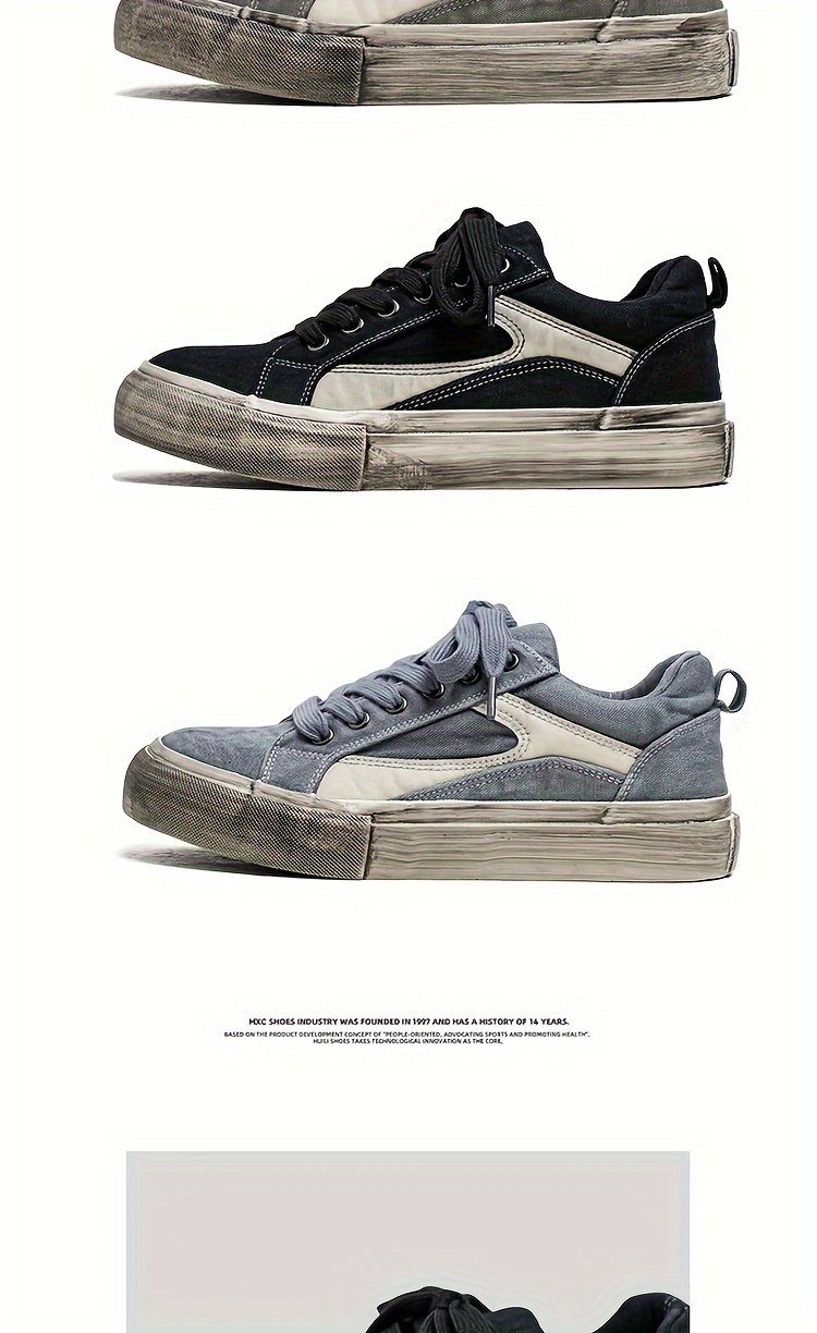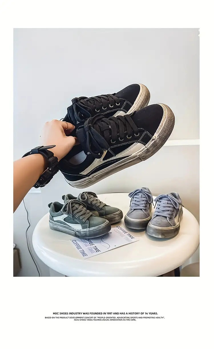 Men's Vintage Distressed Black & White Low-Top Canvas Sneakers - Retro Streetwear Lace-Up Shoes with Durable Rubber Sole & Cushioning, Round Toe Casual Wear Suitable for - (Aged Black/White)