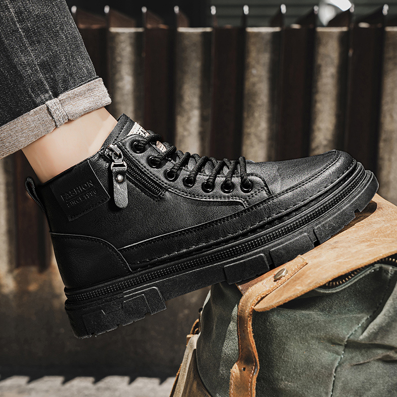 Women'S High-Top Work Boots Sneakers - Thick Anti-Slip Rubber Sole, Lace-Up Ankle Support, Cushioned Insole & Plush - All-Season PVC Upper Casual & Light Work Boots for Everyday (Grey) - Durable Round-Toe Design for Job & Leisure